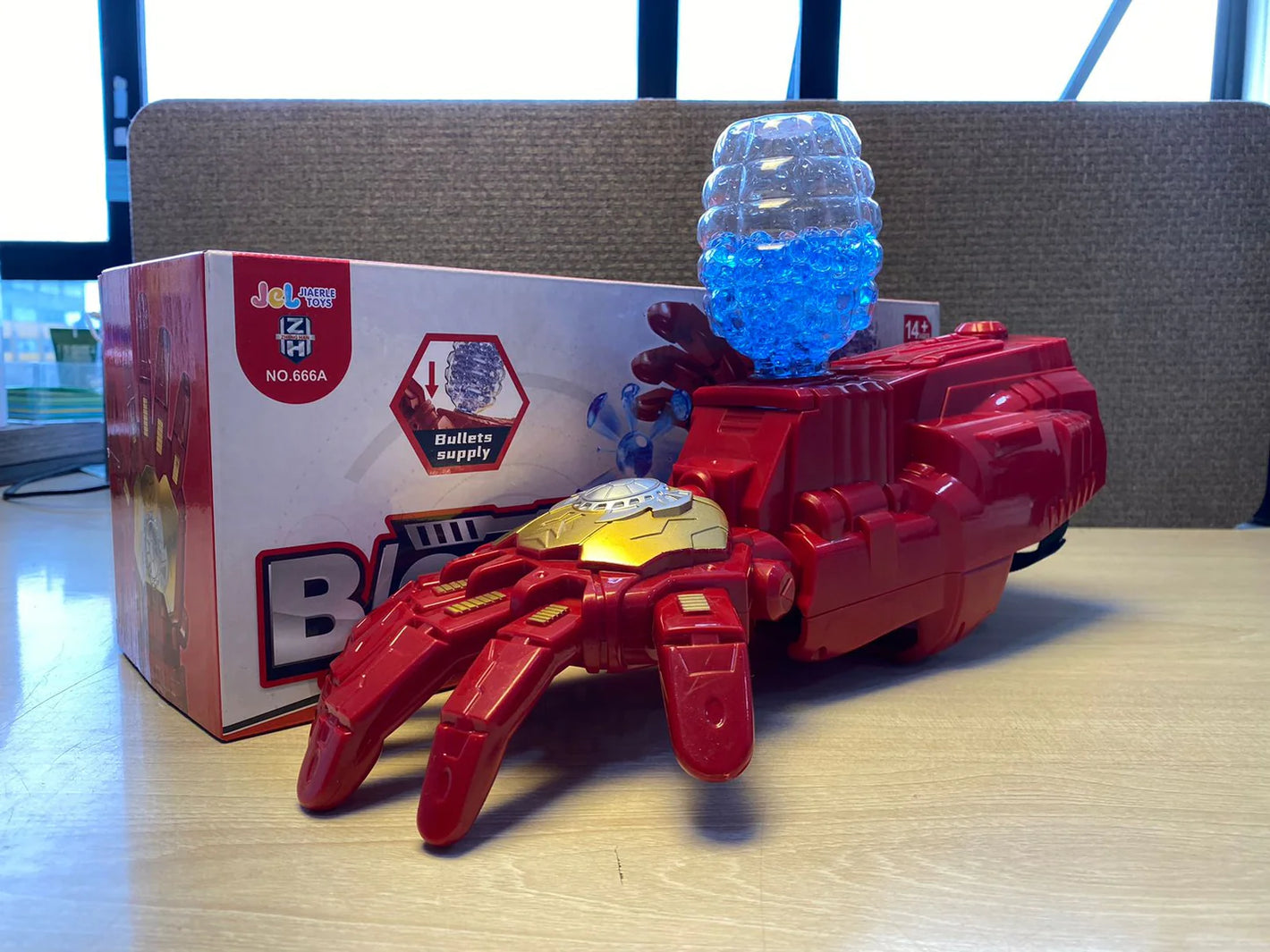 Olvídate de las preocupaciones mientras tus hijos juegan. Este guante innovador dispara bolas de gel que son completamente inofensivas.